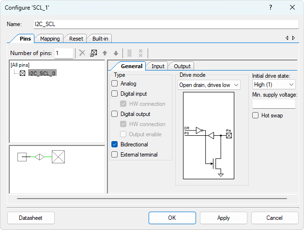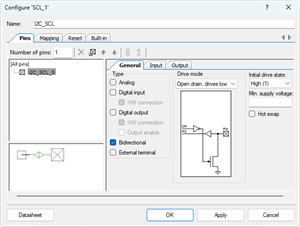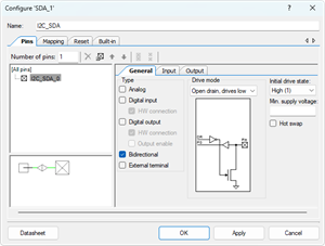 - Delete the existing RST_1 component connected to the reset pin of the I2C component.
