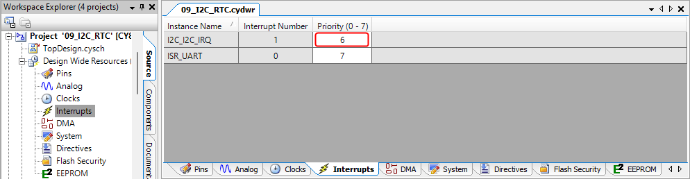 - Open the PSoC5LP workspace in the EE4450 folder.
